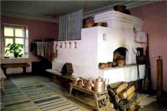 Ed eccoci all’interno dell’izba: l’izba tradizionale ha soltanto una grande stanza (di circa 24 metri quadrati) dove i contadini cucinano, mangiano e dormono e l’oggetto più importante è la stufa. Il nome stesso di izba deriva dalla parola stufa in russo antico: per la precisione izba significa “quella che si riscalda”.